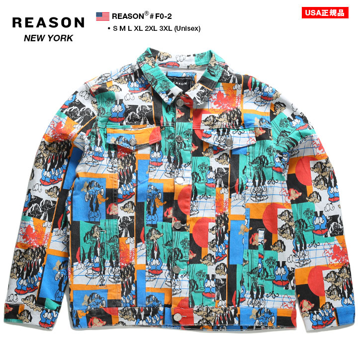 安い購入 リーズン Reason デニムジャケット アウター 長袖 デニムjkt Gジャン ジージャン メンズ 白 S M L Xl 2l Ll 2xl 3l Xxl 3xl 4l Xxxl 大きいサイズ B系 ヒップホップ ストリート系 ファッション ブランド かっこいい 犬キャラクター 切替